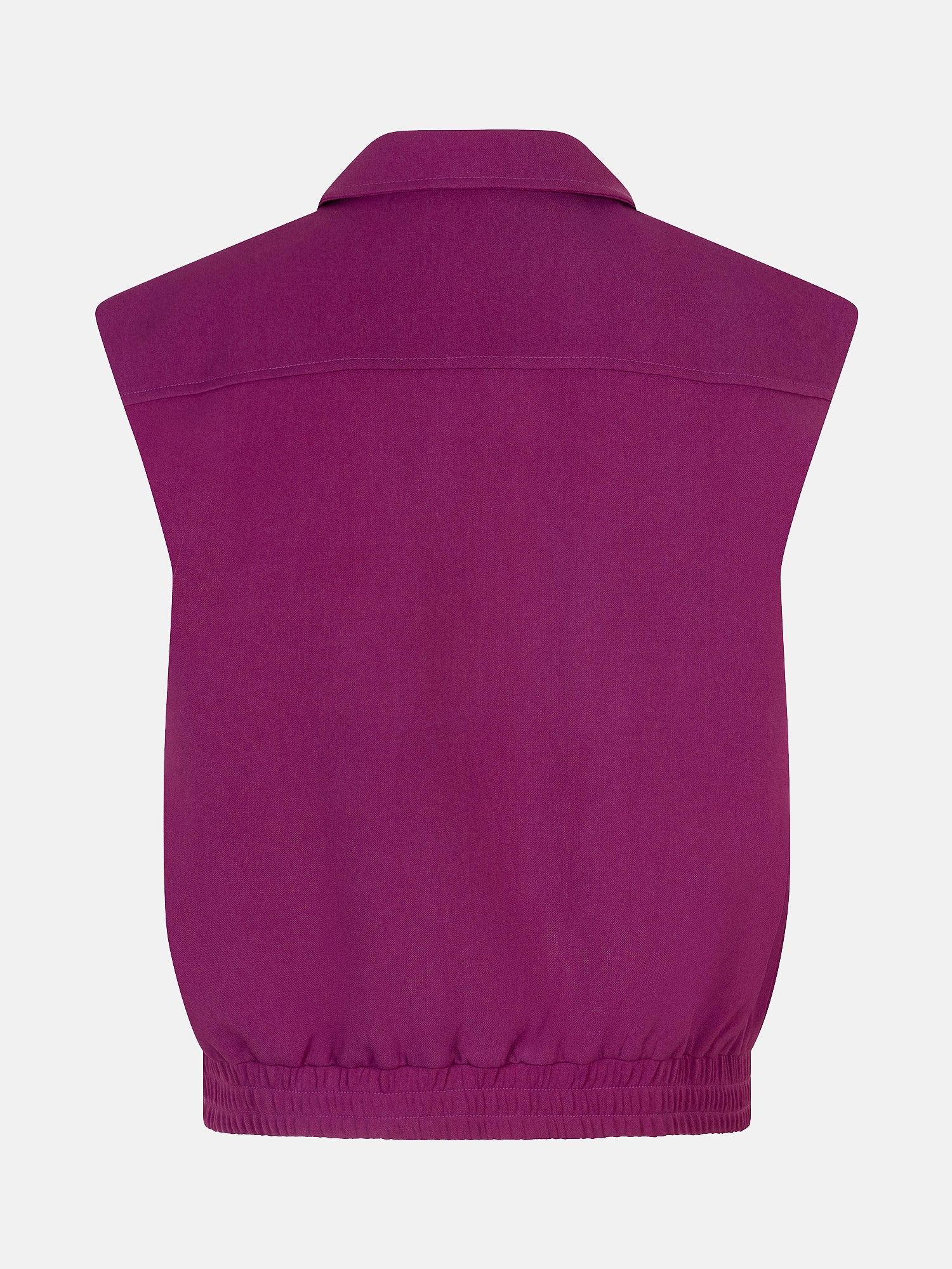Gilet Danielle is een stijlvol gilet en veelzijdige toevoeging aan je garderobe. Het gilet is voorzien van een klassieke kraag en een ritssluiting aan de voorkant, waardoor je het zowel open als gesloten kunt dragen. De mouwloze snit geeft het een moderne, gelaagde look, perfect voor elk seizoen. Verder heeft het gilet steekzakken en een elastische band aan de onderkant voor een comfortabele en flatterende pasvorm. De lengtemaat van Gilet Danielle is 60 cm bij een maat S.