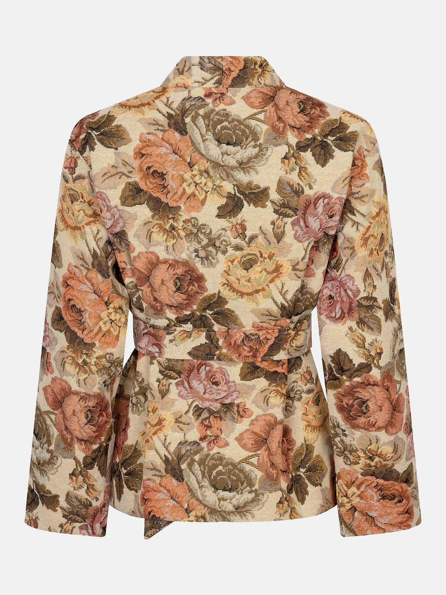 Kimono Penny is een uniek en opvallend item met een vintage uitstraling. Deze kimono heeft een rechte pasvorm en wordt gesloten met een bijpassend strikceintuur in de taille, waardoor je een vrouwelijk silhouet creëert. Het rijke bloemenpatroon en de zachte jacquardstof geven kimono Penny een klassieke, bijna retro vibe. De totale lengte van de kimono is 65 cm en de mouwlengte is 56 cm bij een maat S.