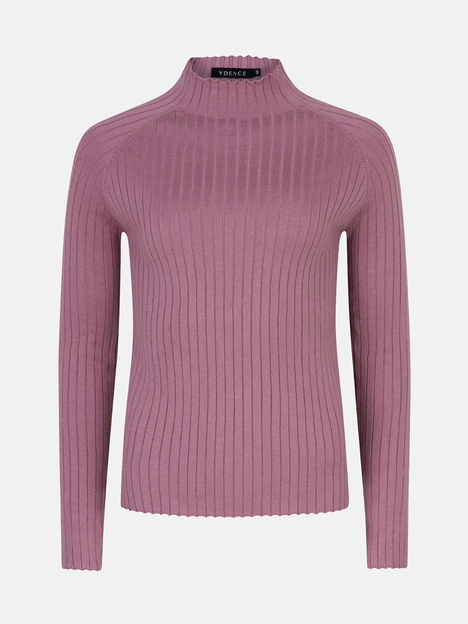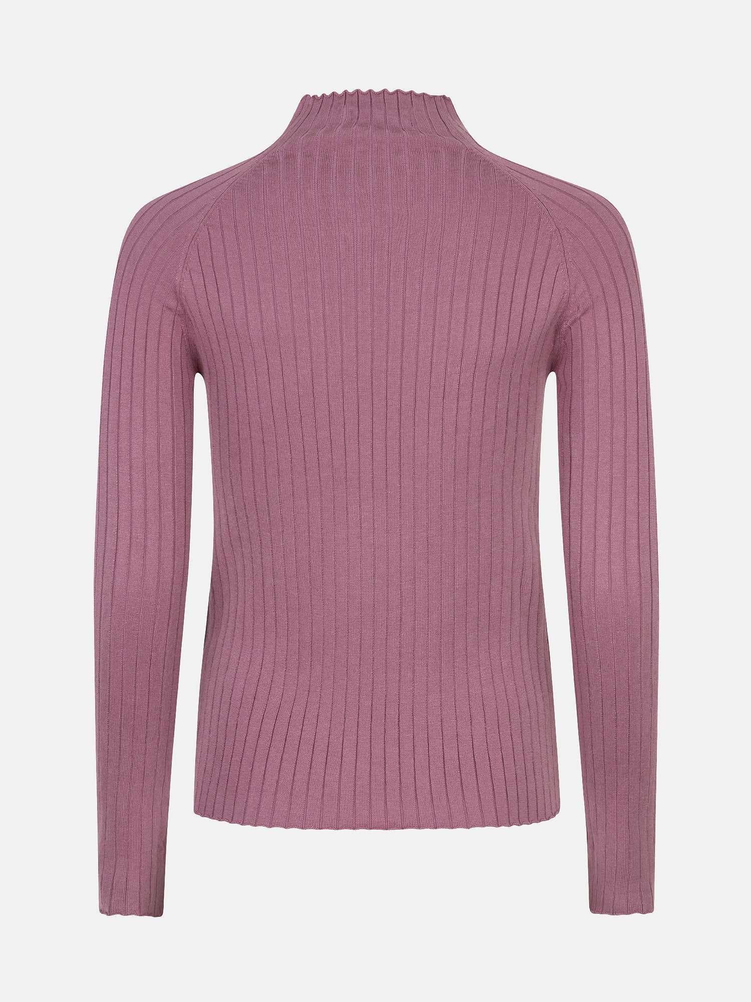 The Knitted Top Kit is a feminine ribbed top with a fitted fit and long sleeves. The top features a stand-up collar and a fun scalloped edge along all the edges.