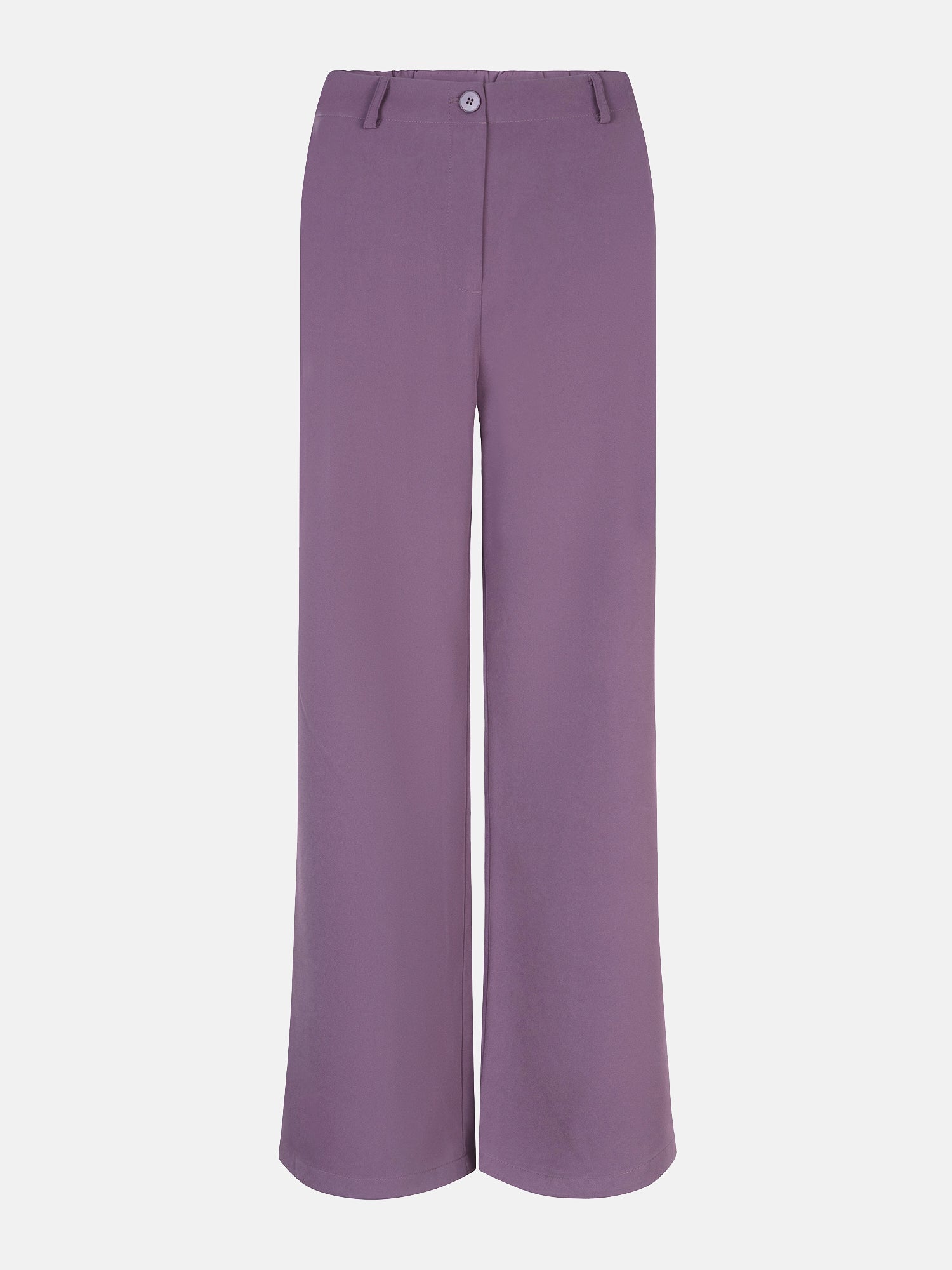 PLEASE NOTE: THIS IS A TALL VERSION. The Solange pants are elegant trousers with wide, straight legs. They have slit pockets at the front and faux pockets at the back. They close with a button and zipper and have an elasticated waistband at the back. They are made of a rich fabric consisting of polyester and rayon. The length is 118 cm and the inseam is 90 cm for a size S.