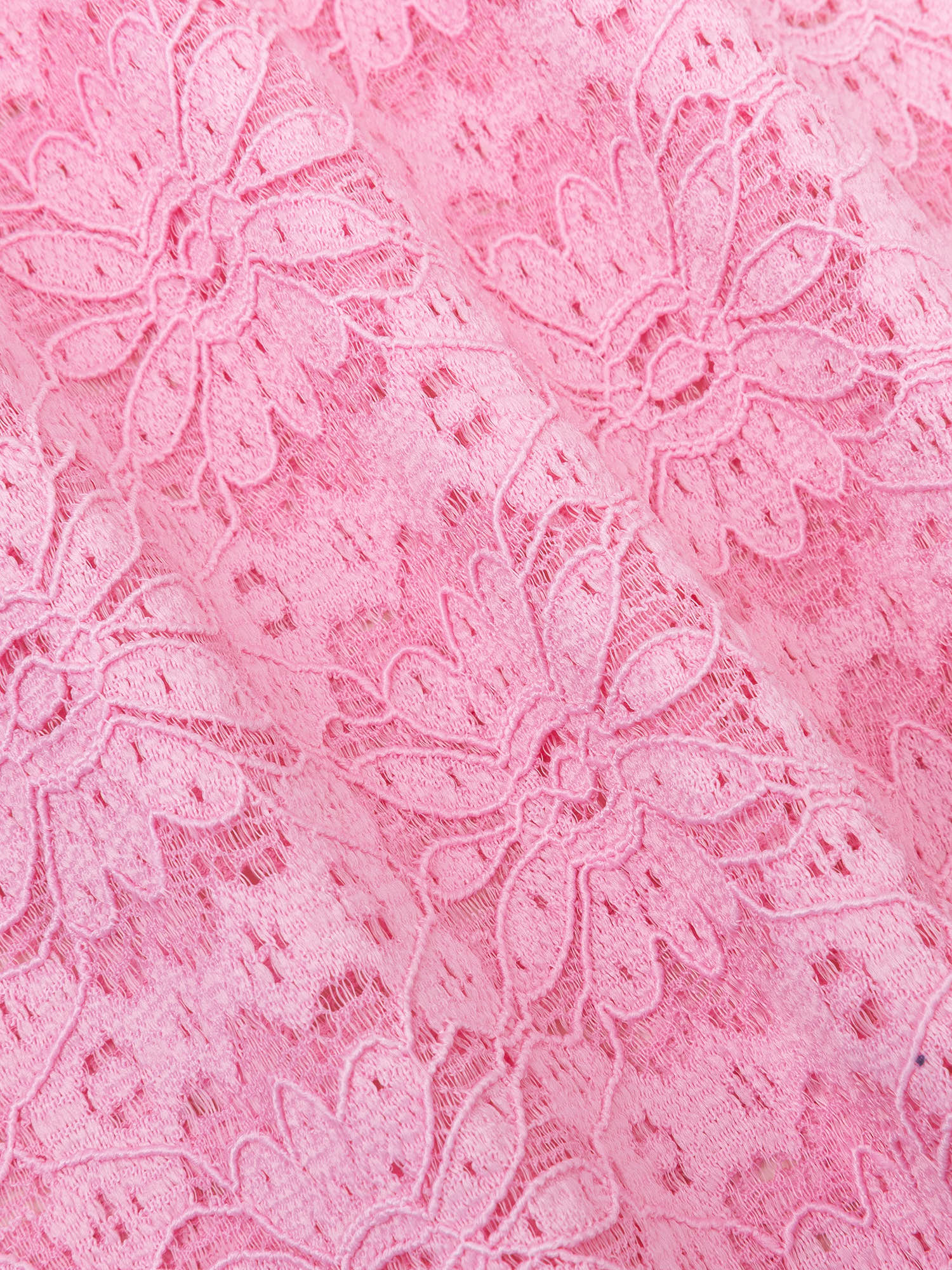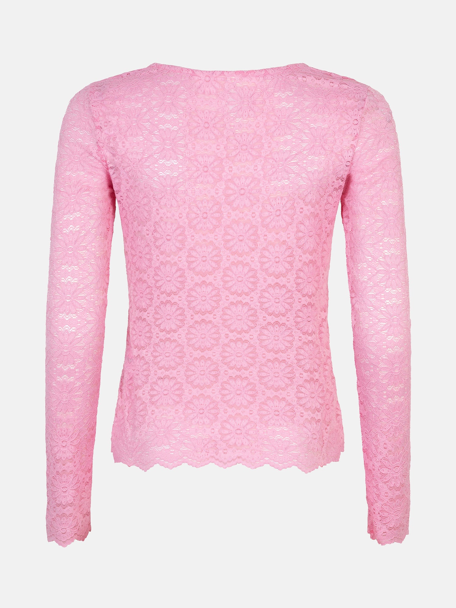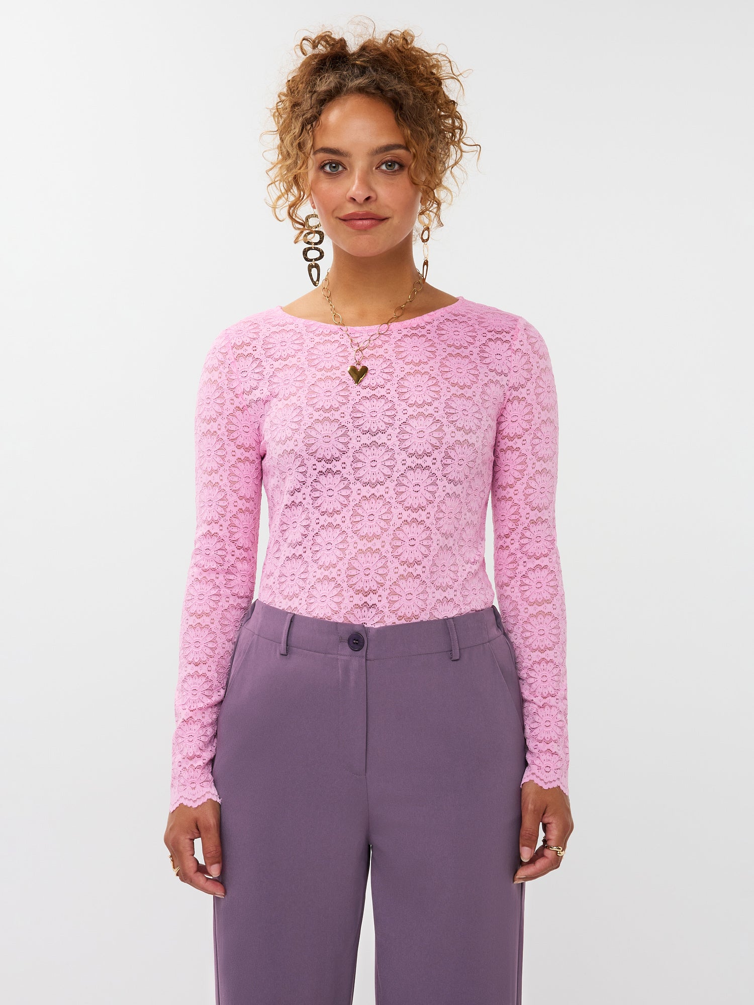 The Loiza top is an elegant basic with a feminine twist. This fitted top is made entirely of lace and features long sleeves and a round neckline. The floral patterns and scalloped edges give it a romantic look, while the stretchy fabric ensures a comfortable fit. Ideal as a statement piece or a subtle layering piece. The Loiza top is 61 cm long with 62 cm sleeves in a size S.