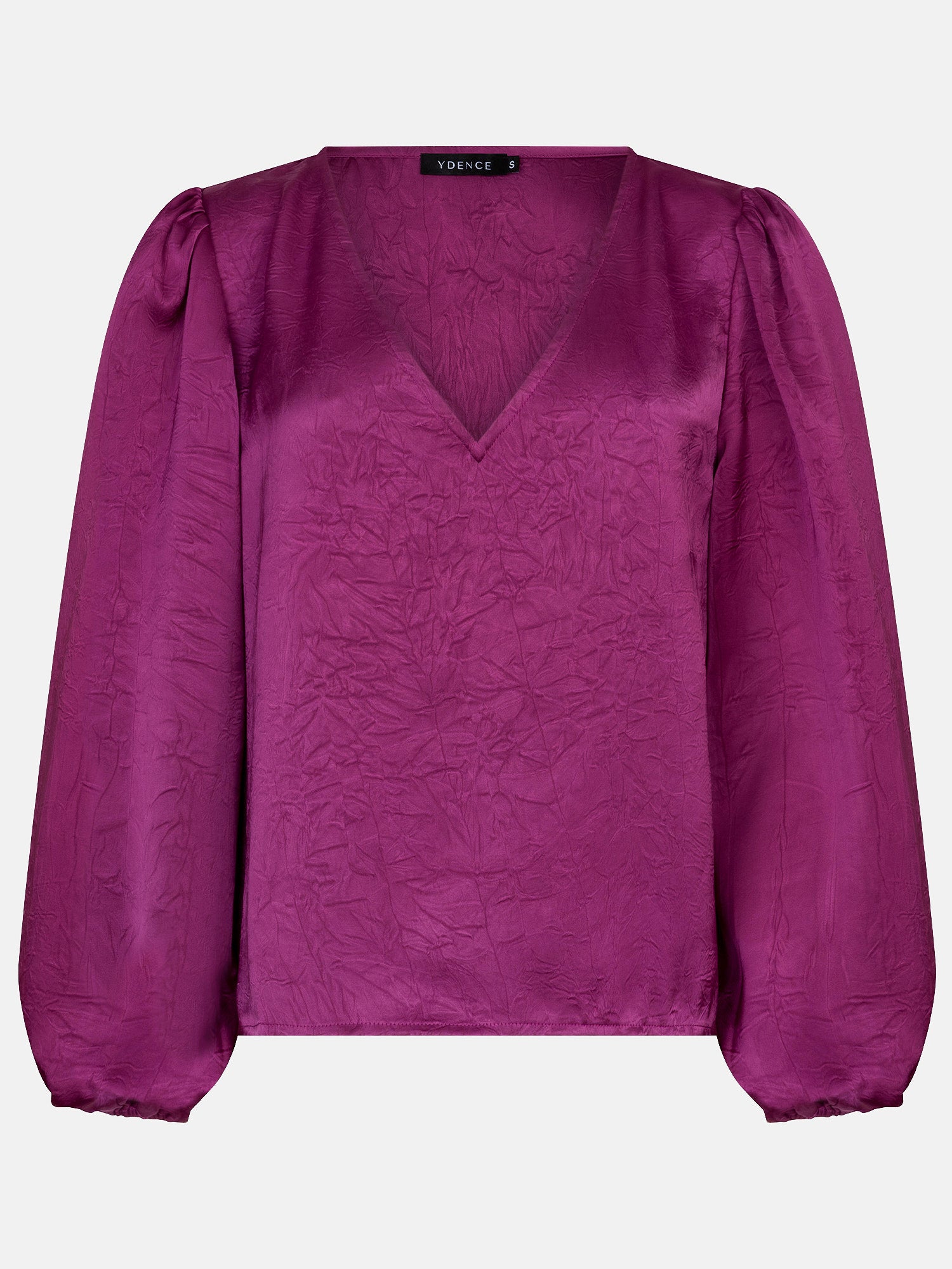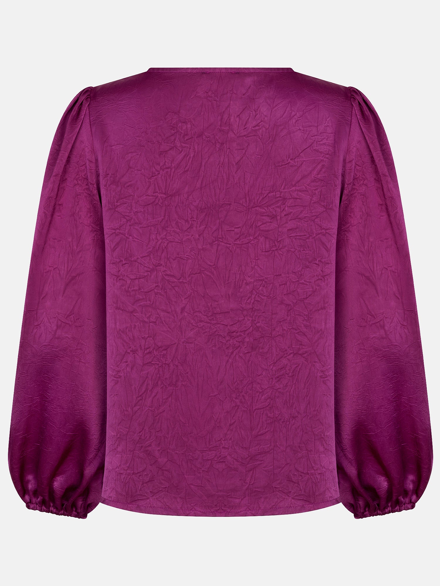 The Nyma top is an elegant blouse with a subtle sheen that adds a touch of luxury to your outfit. This top has a straight, slightly loose fit with a deep V-neck and gently puffed long sleeves. The elasticated cuffs create a beautiful shape and extra comfort. Thanks to the soft, flowing fabric, the Nyma feels wonderful and is perfect for both casual and formal occasions. The total length of the top is 55.5 cm and the sleeve length is 61 cm in a size S.