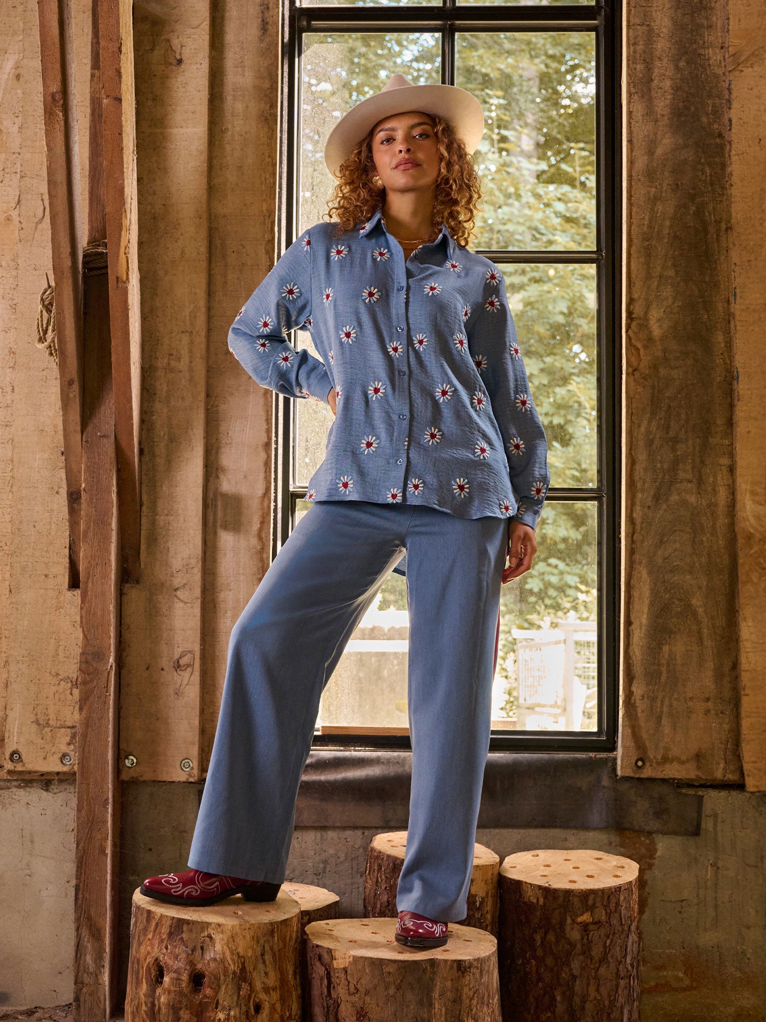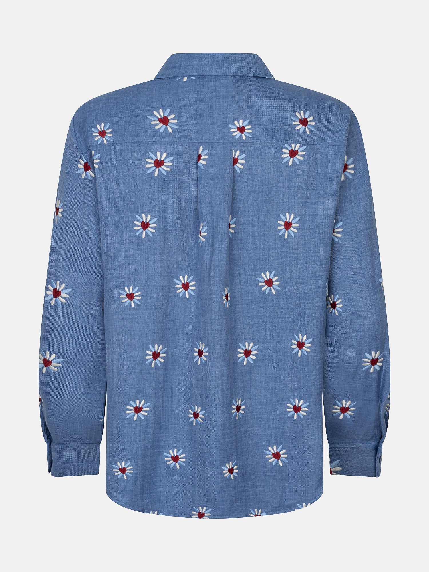 Blouse Gabia is een luchtige blouse met een speelse geborduurde bloemenprint. Deze blouse heeft een rechte, oversized pasvorm en sluit met knopen aan de voorkant. De lange mouwen en klassieke kraag geven het item een tijdloze uitstraling, terwijl het bloemetjespatroon zorgt voor een frisse en vrolijke look. Gemaakt van een zachte, soepele stof is Gabia perfect voor dagelijks gebruik. De Totale lengte aan de voorkant is 68 cm, achterkant is 74 cm en de mouwlengte 58 cm bij een maat S.