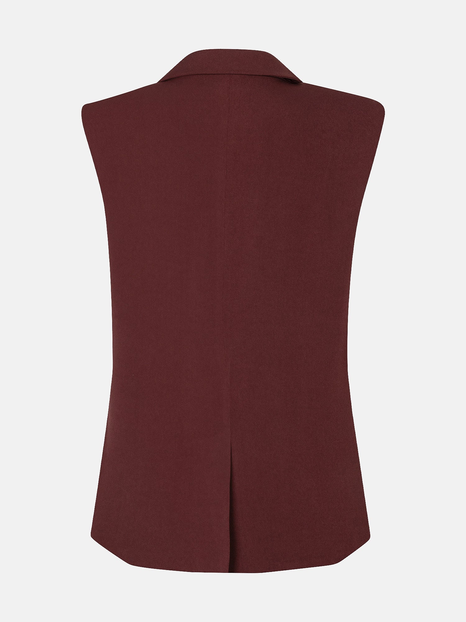 Gilet Lima is een stoer en vrouwelijk gilet met padded shoulders. Het gilet heeft een lichte oversized pasvorm, paspelzakken met klep aan de voorzijde en sluit met een enkele knoop aan de voorzijde. Het gilet is gemaakt van een rijke stof bestaande uit polyester en rayon en is volledig gevoerd. Aan de achterzijde van het gilet zit een kleine split. De lengtemaat van gilet Lima is 72 cm bij een maat S.