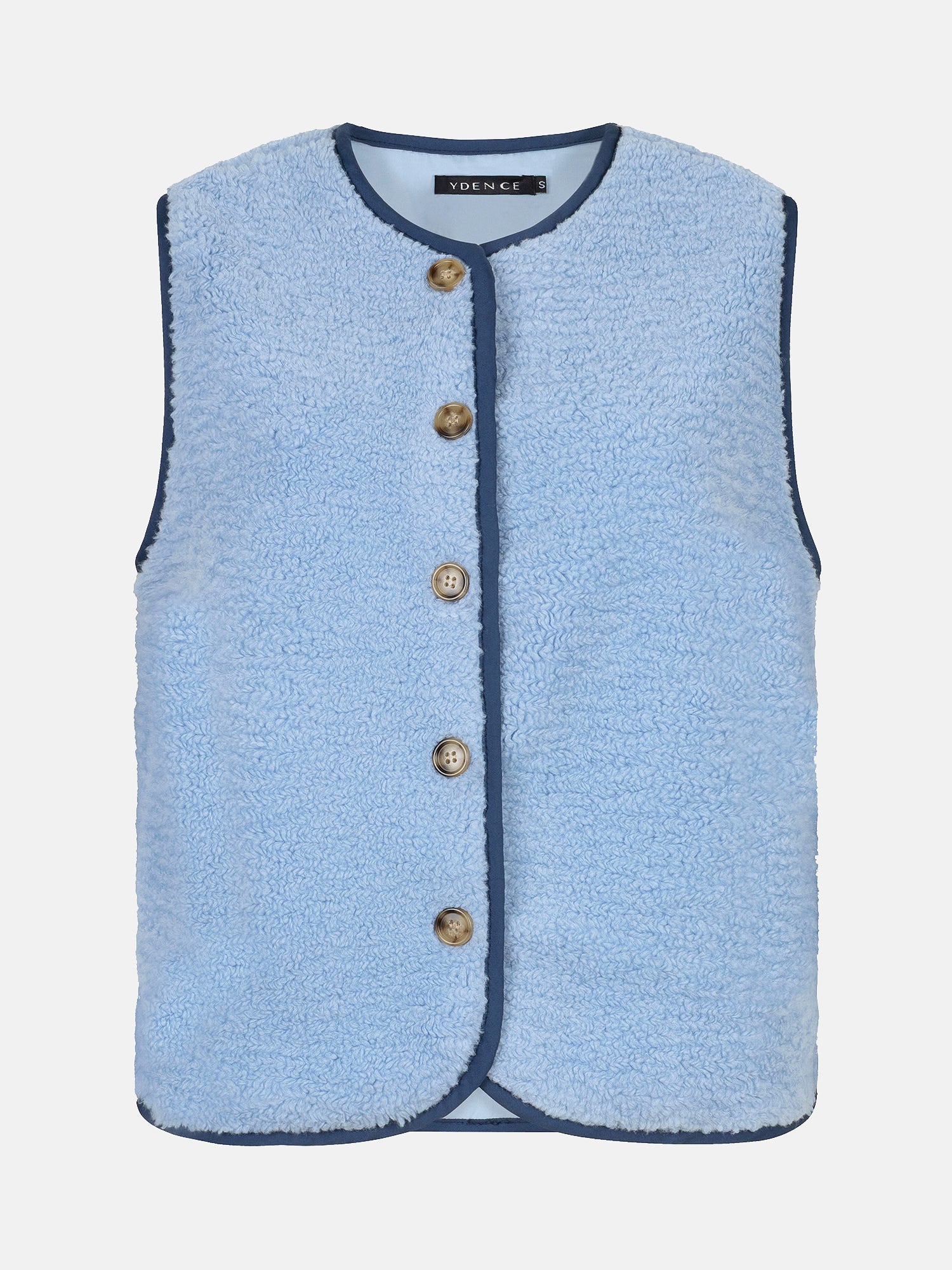 Gilet Puck is een speels en comfortabel item waarmee je je look gelijk een mooie layer mee kan geven. Dit gilet heeft een rechte pasvorm en sluit met knopen aan de voorkant. De zachte teddy stof zorgt voor een cozy gevoel, terwijl de contrasterende biezen langs de randen het geheel een frisse uitstraling geven. De totale lengte is 57 cm bij een maat S.