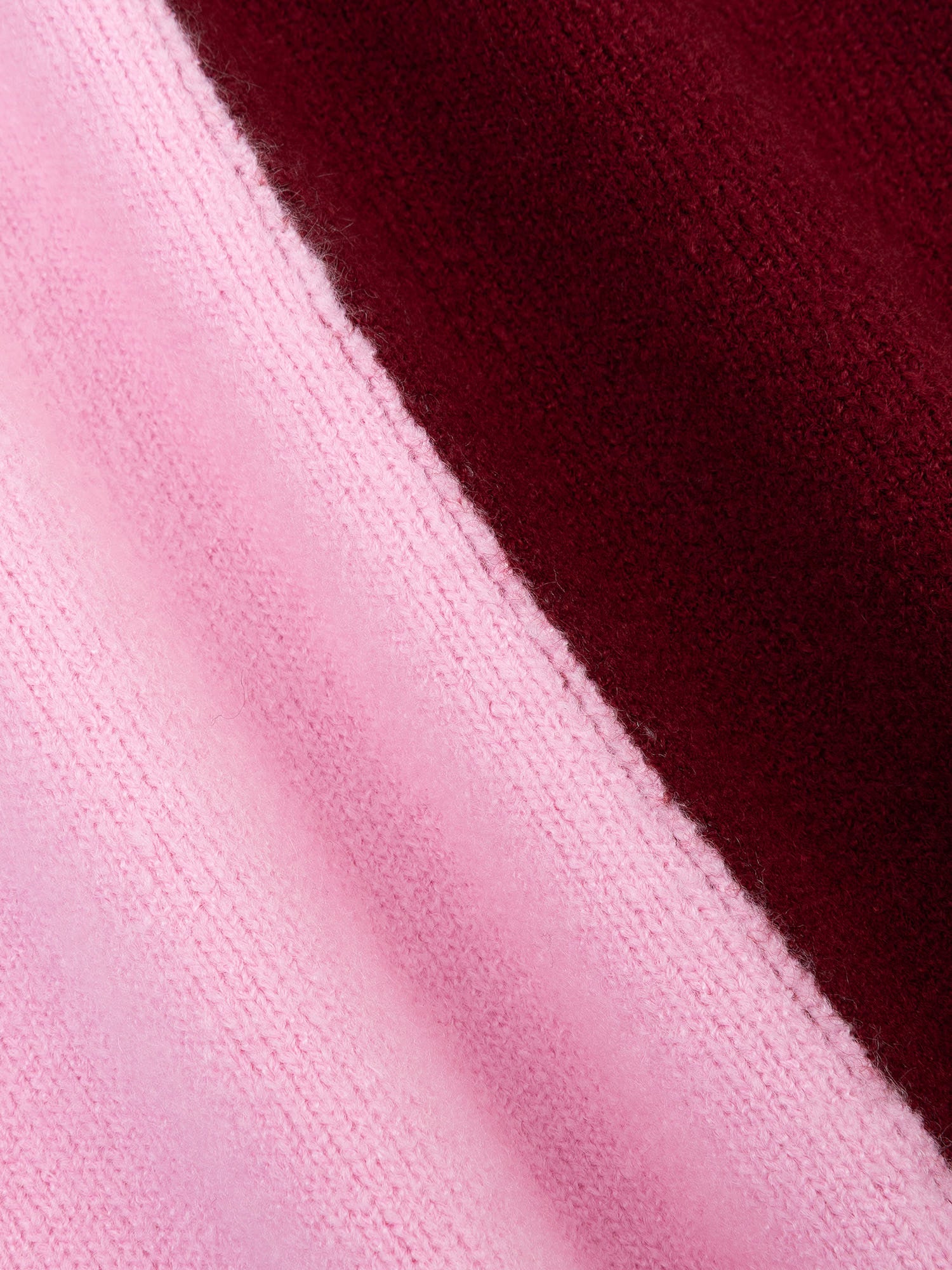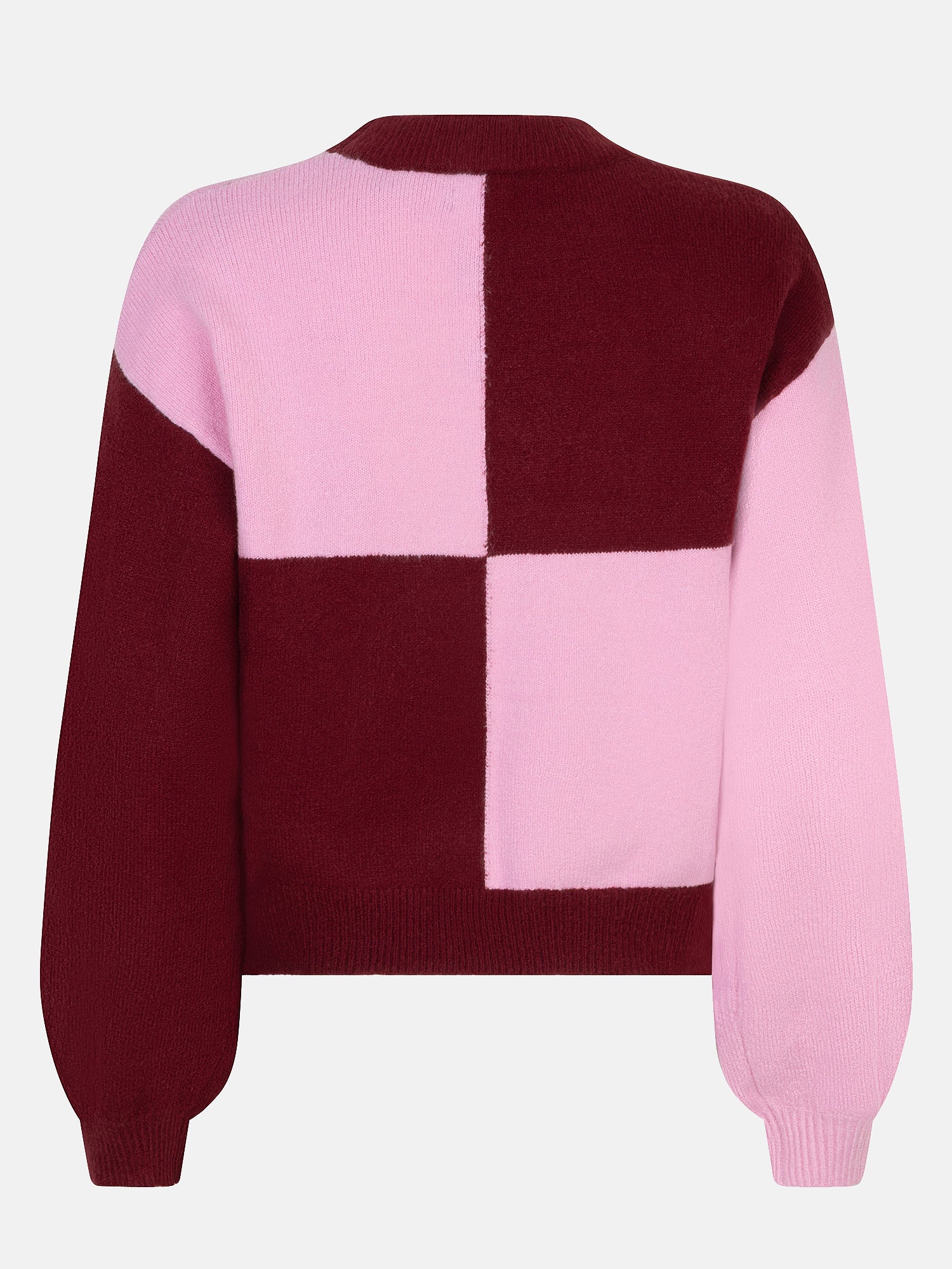 Knitted sweater Cubi geeft je outfit direct een speelse en trendy touch. Deze trui heeft een relaxed, rechte pasvorm en is ontworpen met een opvallend colorblock patroon. De ronde hals en licht ballonvormige mouwen zorgen voor een comfortabele en eigentijdse uitstraling. De zachte gebreide stof maakt deze sweater ideaal voor zowel een casual dagje uit als een cozy avond thuis. De totale lengte van knitted sweater Cubi is 57 cm en de mouwlengte is 51 cm bij een maat S.