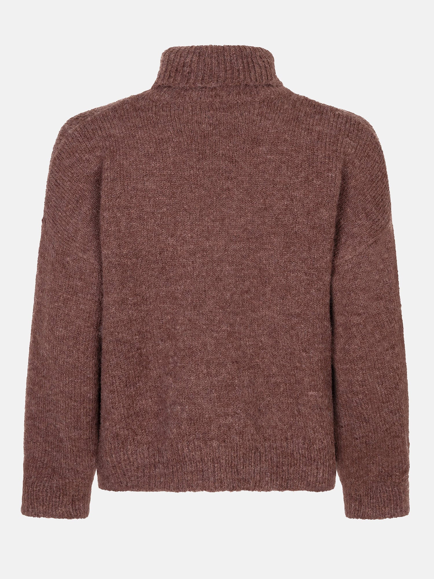 Knitted sweater Delia is een gebreide trui met een grote col en een rechte, comfortabele pasvorm. De trui heeft een klein splitje aan de zijkant. De zachte knit maakt dit item perfect voor koude dagen, terwijl de eenvoud zorgt voor een tijdloze uitstraling. Dankzij de lange mouwen en iets losse fit combineert Delia moeiteloos stijl en comfort. De mouwlengte is 46 cm en de bodylength is 57,5 cm bij een maat S.