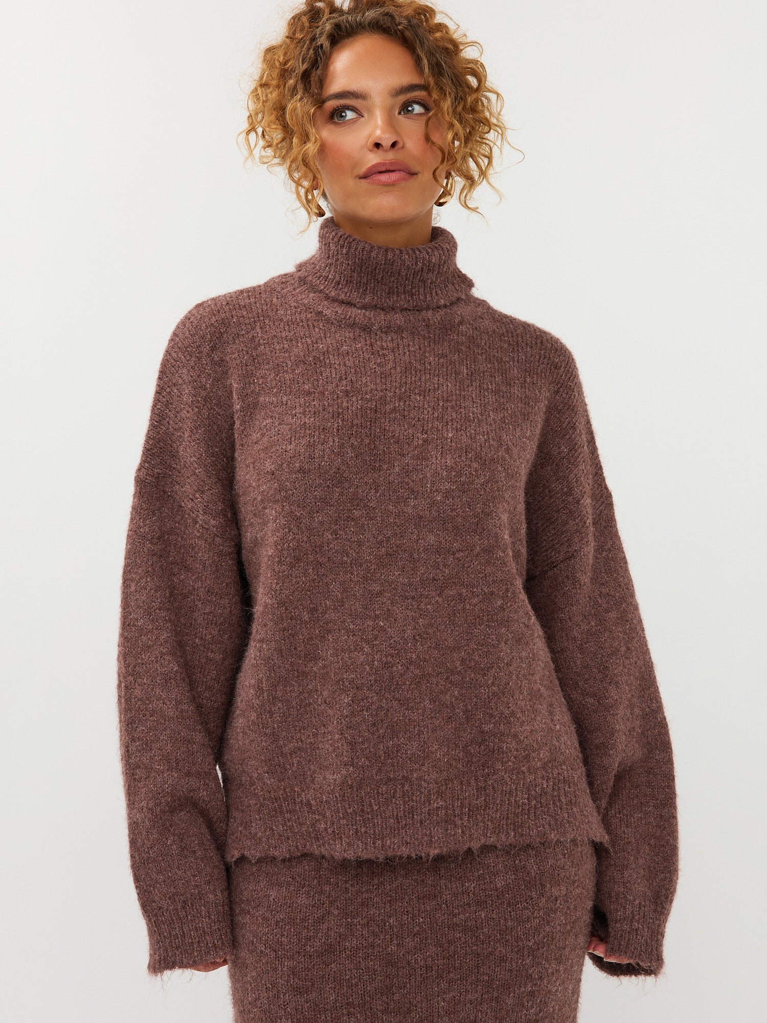Knitted sweater Delia valt oversized, we adviseren om een maat kleiner te kiezen.