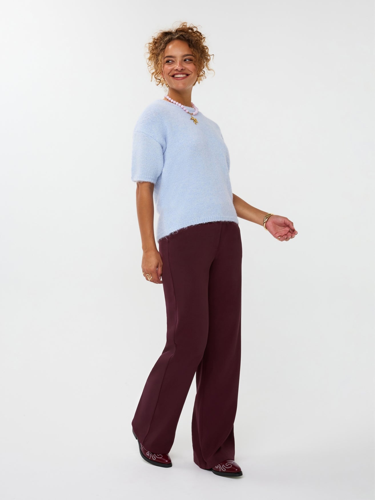 Knitted sweater Eddie is het perfecte item om comfort en stijl moeiteloos te combineren. Deze trui met korte mouwen heeft een rechte, iets losse pasvorm en is gemaakt van een zachte, gebreide stof die heerlijk aanvoelt. De ronde hals en de subtiele structuur geven de trui een minimalistische maar moderne uitstraling. Ideaal voor het tussenseizoen of als laagje onder een blazer. De totale lengte van knitted sweater Eddie is 58 cm met een mouwlengte van 17,5 cm bij een maat S.