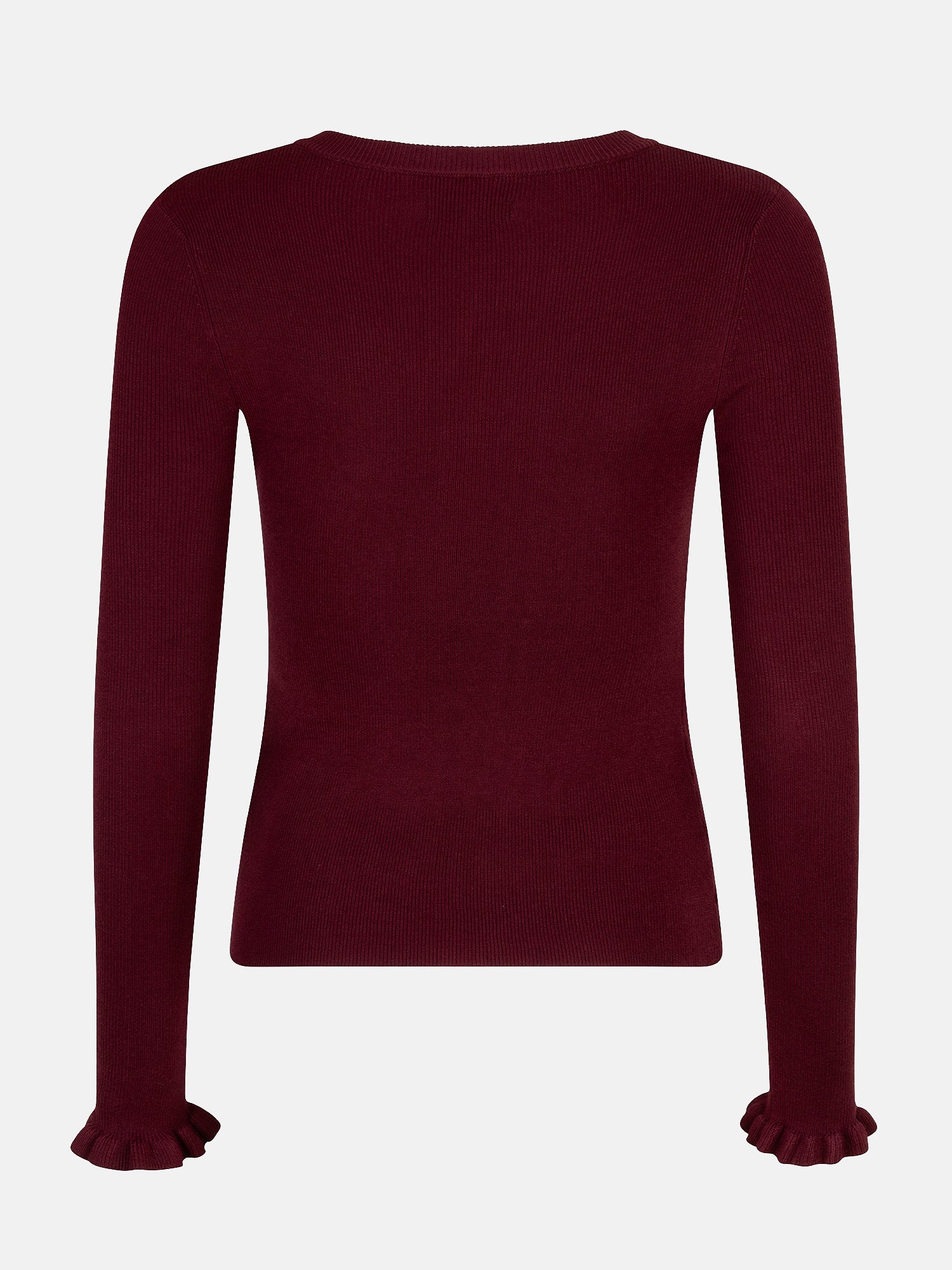Knitted top Shirley is een elegante basic met een speels detail. Deze aansluitende top heeft lange mouwen en een ronde halslijn, wat zorgt voor een tijdloos silhouet. De subtiele geschulpte randen aan de mouwuiteinden geven het item een vrouwelijke en eigentijdse touch. Gemaakt van een comfortabele, fijngebreide stof is deze top ideaal voor zowel werk als vrije tijd. De totale lengte van knitted top Shirley is 56,5 cm met een mouwlengte van 62 cm bij een maat S.
