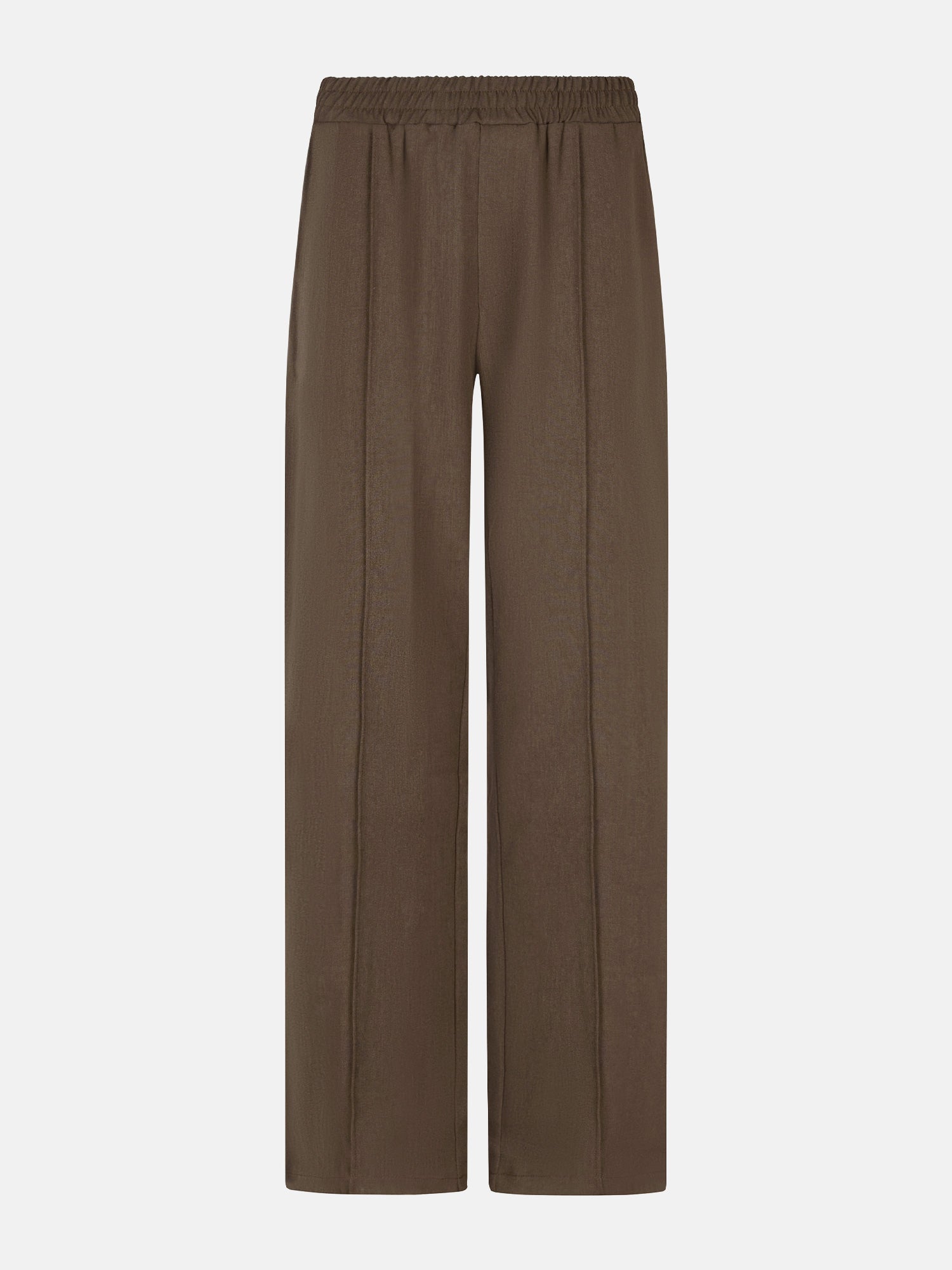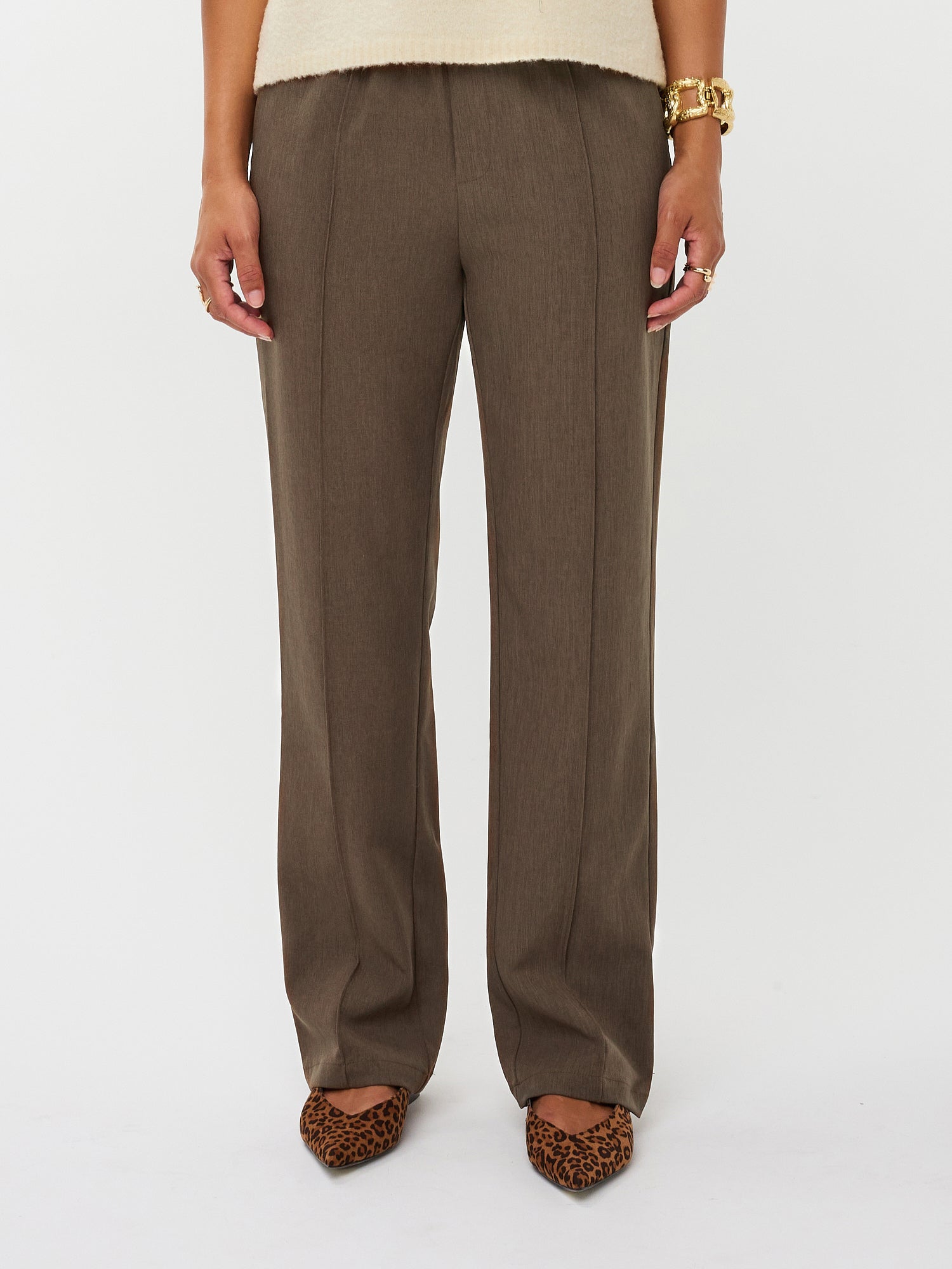 Pants Alisson is een elegante broek die jouw outfit een sophisticated uitstraling geeft. Deze broek heeft een rechte, slanke pasvorm en is voorzien van een comfortabele elastische tailleband. De subtiele verticale naden aan de voorkant creëren een flatterend en slank silhouet. Gemaakt van een luxe stof is Alisson zowel stijlvol als comfortabel, perfect voor zowel werk als vrije tijd. De lengtemaat van de broek is 106 cm en de binnenbeenlengte is 76 cm bij een maat S.