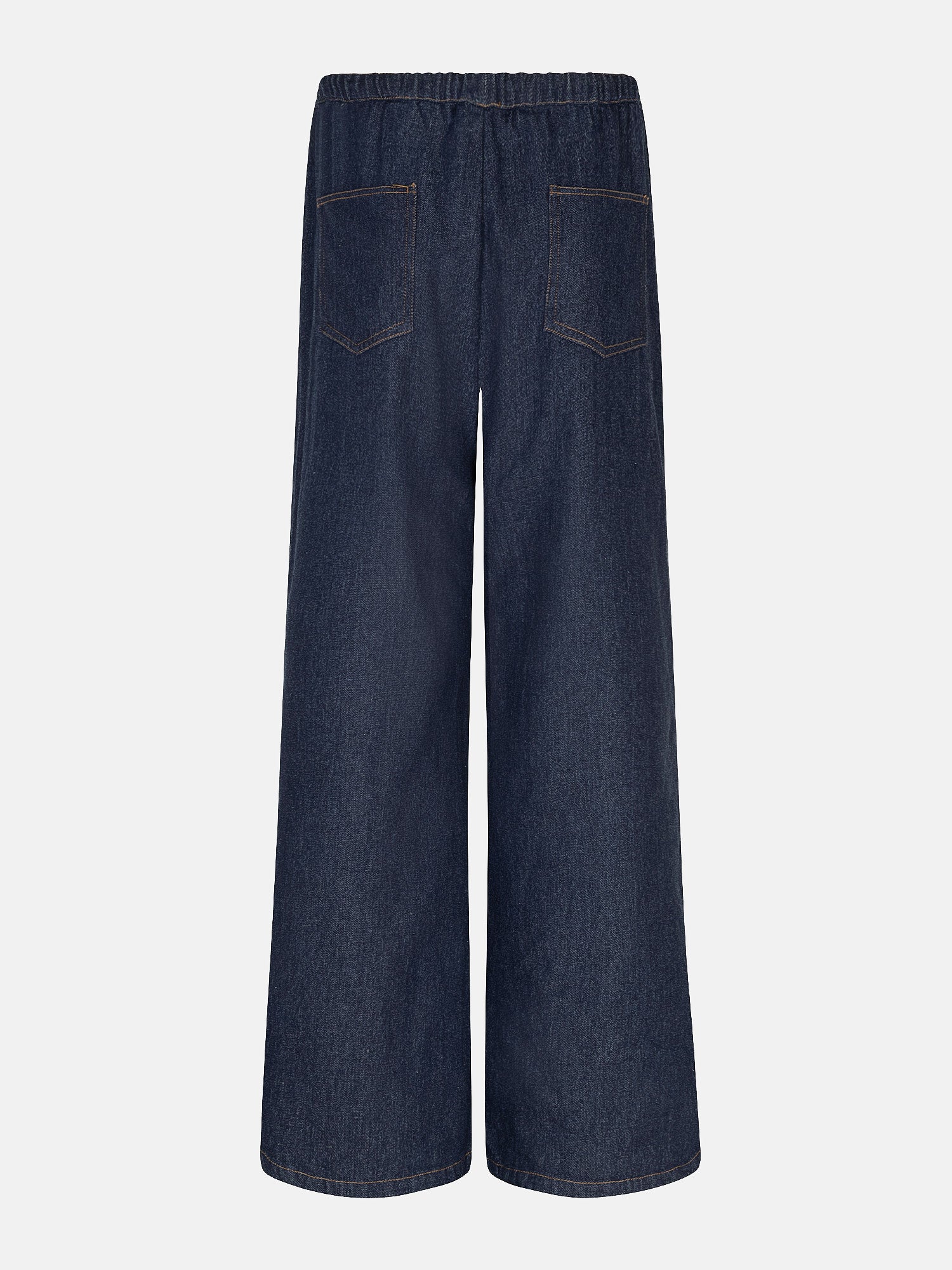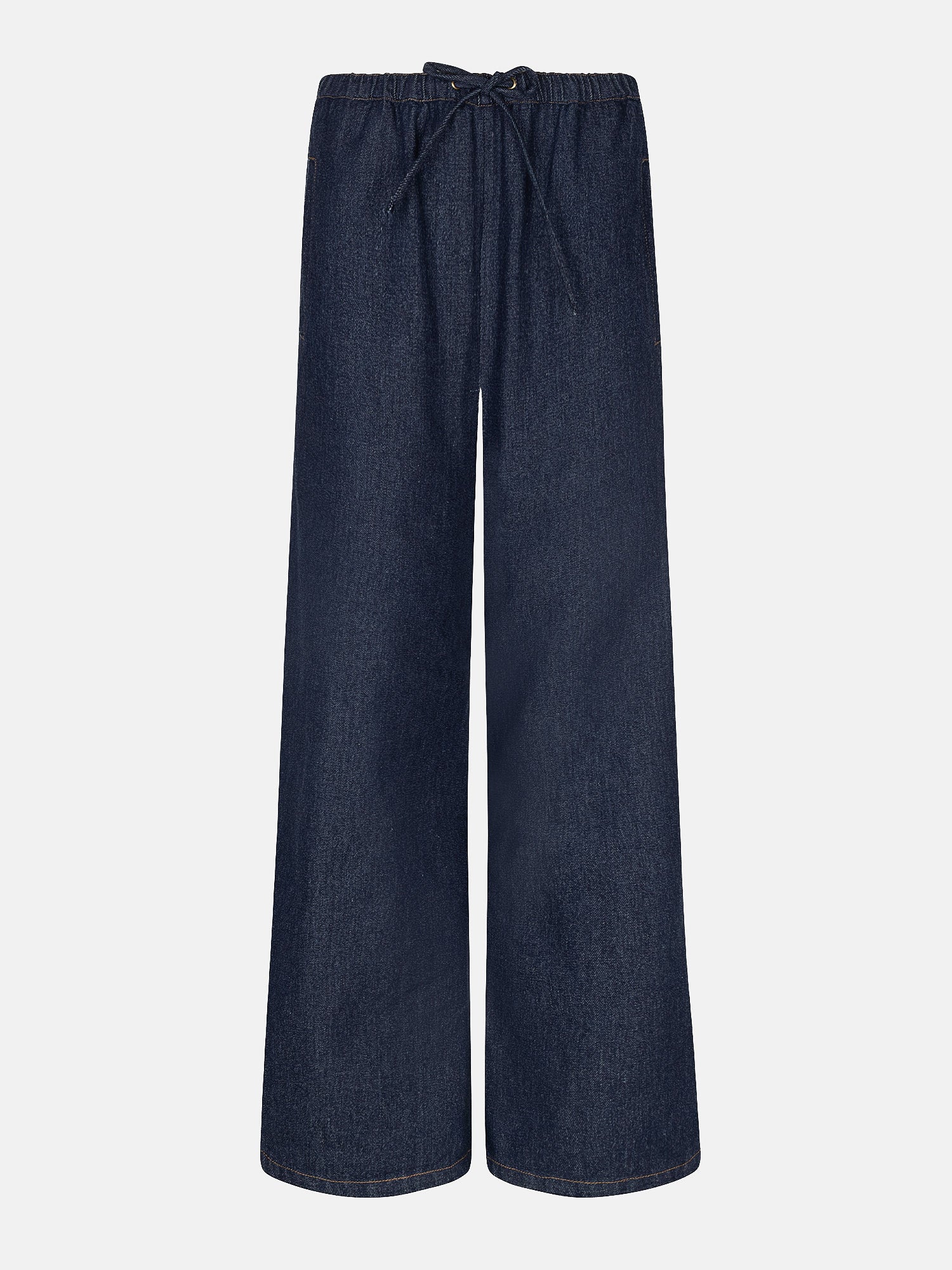 LET OP DIT IS EEN TALL VERSIE. Pants Gracie is een comfortabele denim broek met een rechte, wijde pijp. De elastische taille met strikkoord zorgt voor een relaxte fit, terwijl de denimlook een stoere en tijdloze uitstraling geeft. De denimstof is soepel waardoor het los en comfortabel draagt. De binnenbeenlengte is 86 cm en de lengte van de broek is 116 cm bij een maat S.