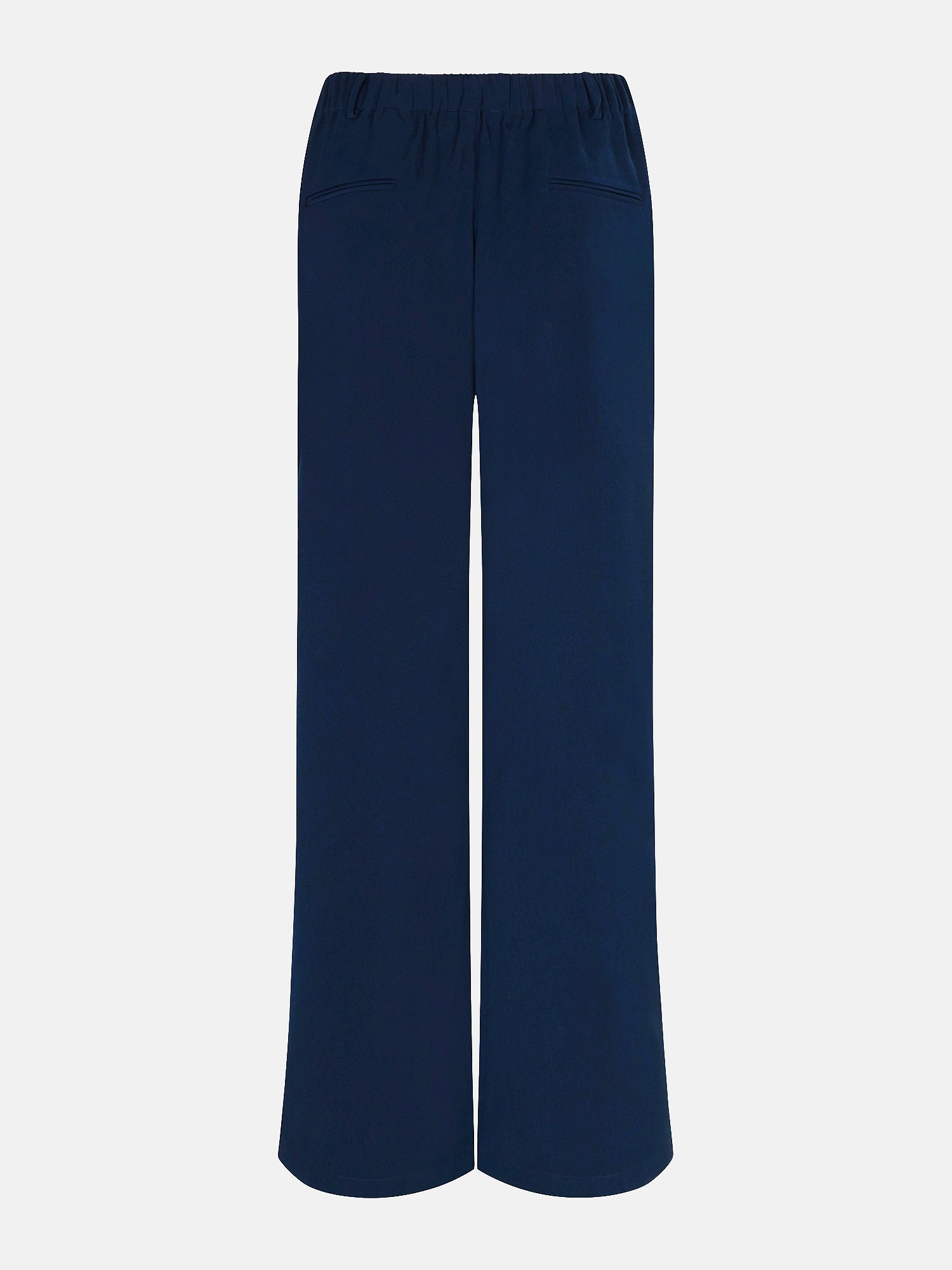 LET OP DIT IS EEN TALL VERSIE. Pants Solange is een elegante pantalon met wijde, rechte pijpen. De pantalon heeft steekzakken aan de voorzijde en faux zakken aan de achterzijde. De pantalon sluit met een knoop- en ritssluiting en heeft een elastische tailleband aan de achterzijde. De pantalon is gemaakt van een rijke stof bestaande uit polyester en rayon. De lengtemaat is 118 cm en de binnenbeenlengte is 90 cm bij een maat S.