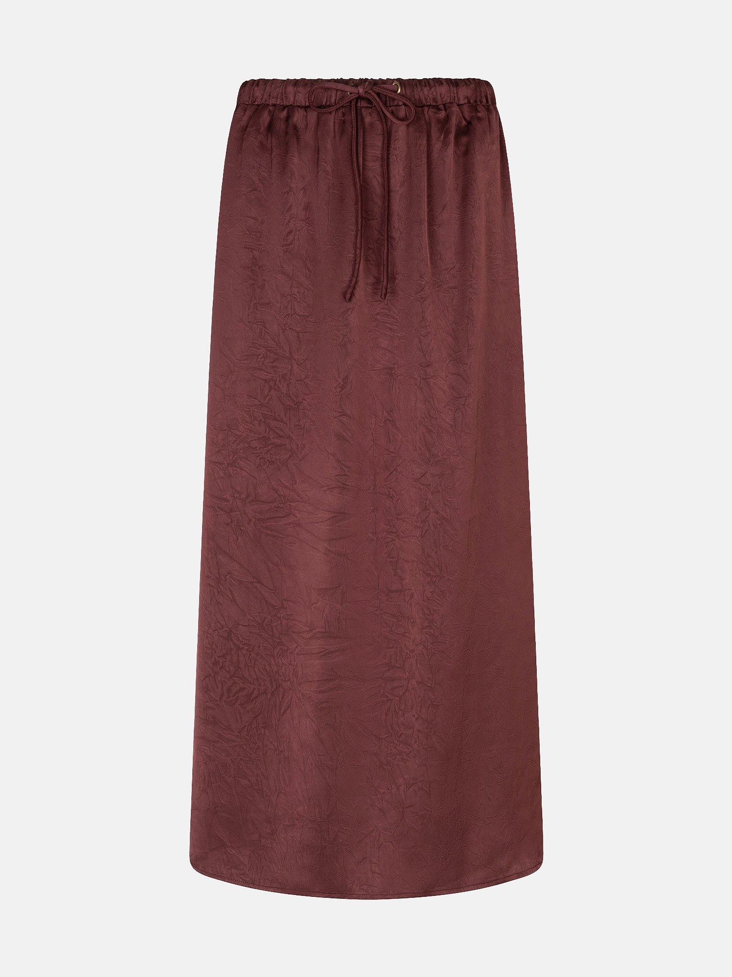 Satin skirt Atel is de ultieme combinatie van comfort en stijl! Deze lange rok is gemaakt van een subtiel glanzende satijnlook stof met een lichte textuur, wat de rok een luxe uitstraling geeft! De elastische tailleband met striksluiting zorgt voor een comfortabele pasvorm én een speelse touch. De lengte van de rok is 87 cm in maat S.
