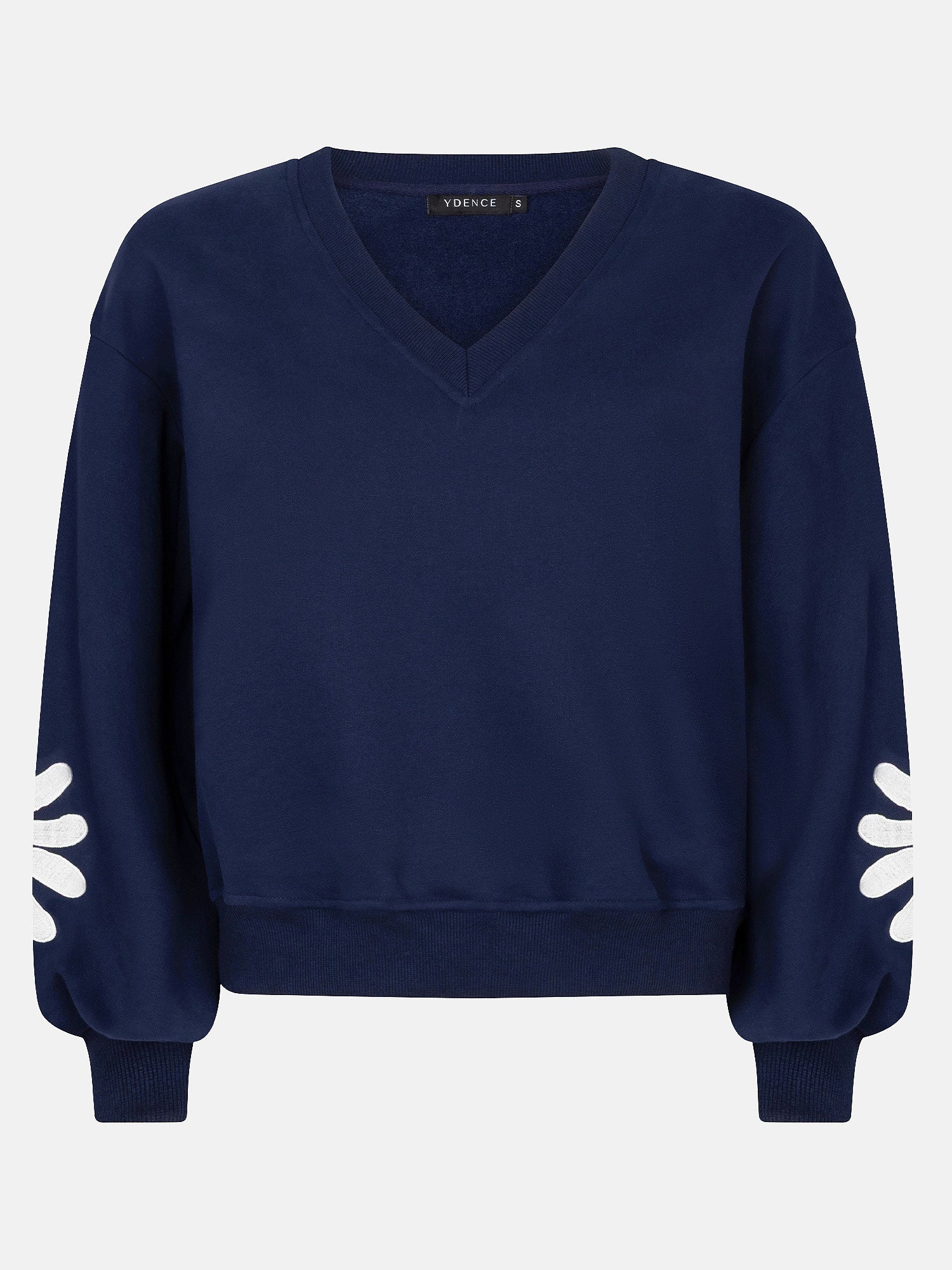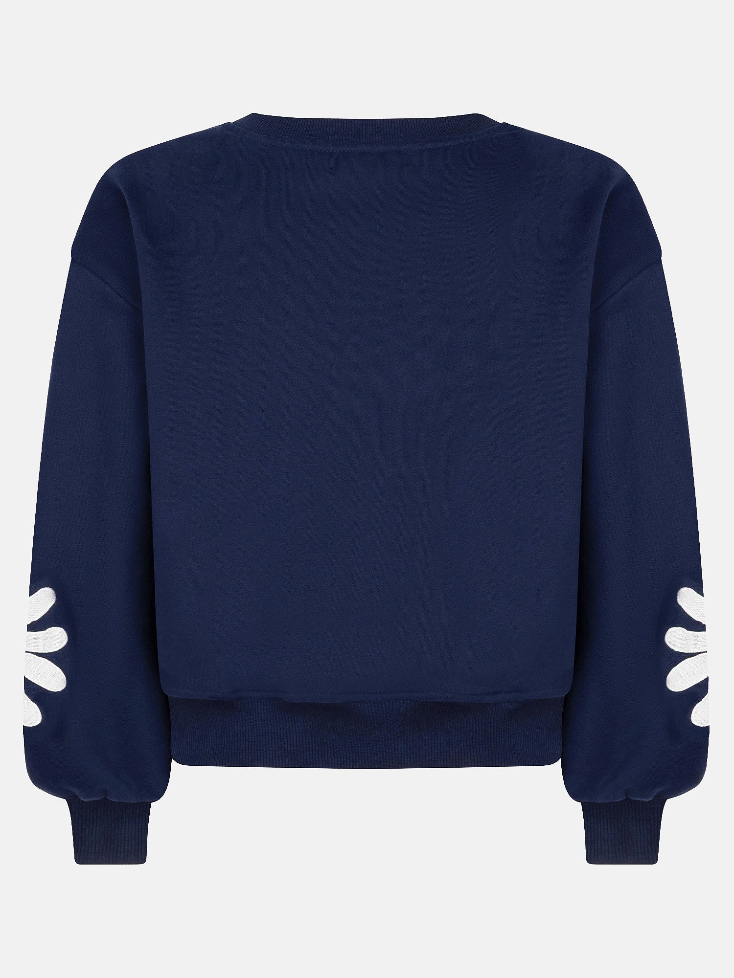 Sweater Madelief is een speelse trui met een tijdloze V-hals. De eyecatcher van dit item zit in de mouwen: beide zijn voorzien van een geborduurde bloem met een hart in het midden, wat de sweater een vrolijke en unieke twist geeft. Dankzij de losse pasvorm en de zachte stof is Madelief heerlijk comfortabel en ideaal voor dagelijks gebruik. De mouwlengte is 51 cm en de bodylength 61 cm bij maat S.