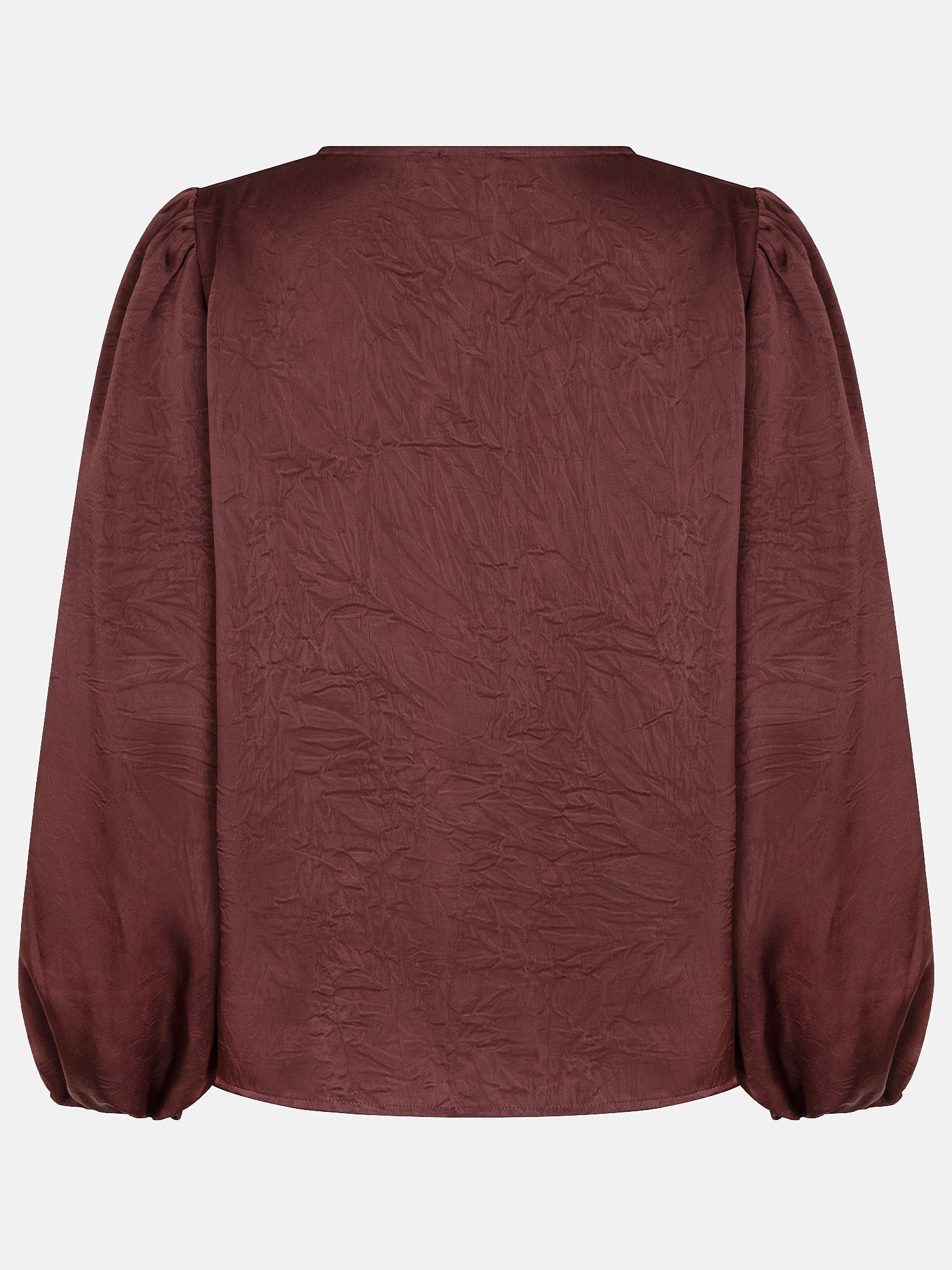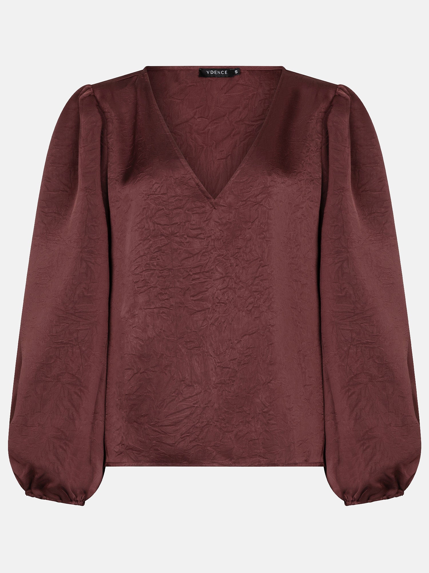 Top Nyma is een elegante satijnen blouse met subtiele glans. De top heeft een vrouwelijke V-hals en licht gepofte mouwen die eindigen in een elastische boord. Dankzij de soepele satijnen stof valt Nyma prachtig en geeft het iedere outfit een chique uitstraling. De totale lengte van de top is 55,5 cm en de mouwlengte is 61 cm bij een maat S.